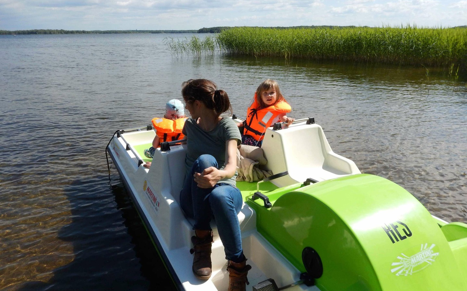 Půjčovna lodí u jezera Senftenberg zahrnuje tři různé typy šlapadel pro ruční ovládání pomocí síly nohou. Některé šlapadla mají potápěčskou nebo opalovací plošinu s žebříkem pro koupání a opalování. Šlapací čluny mají trup katamaránu, a proto se velmi snadno řídí s malým ponorem. Jsou velmi vhodné i pro delší poznávací výlety po jezeře Senftenberg.