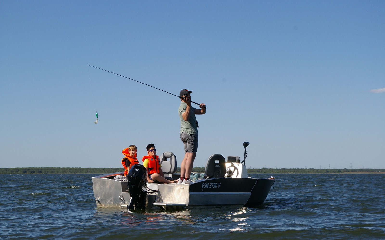 S hliníkovou lodí může každý na jezeře Bärwalder See strávit pár hodin, den anebo celou rybářskou dovolenou.