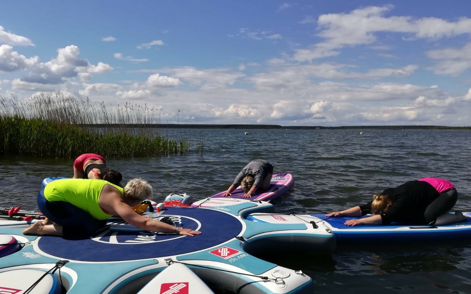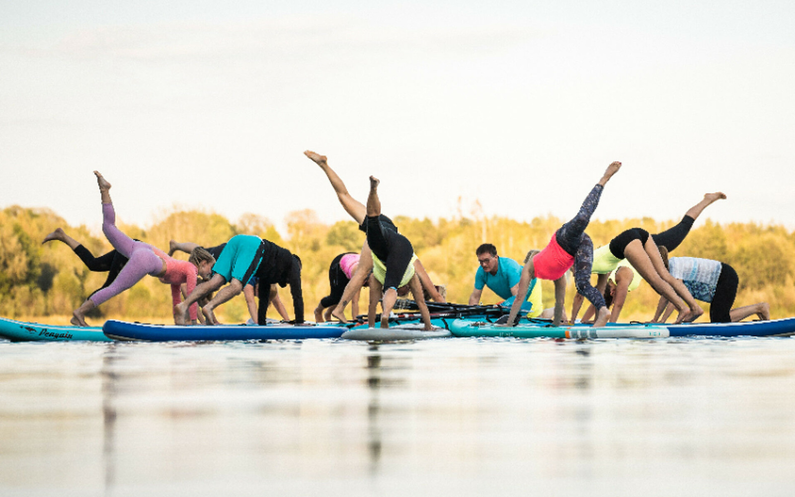 Při cvičení SUP jóga se pádlo na stojáka používá jako plovoucí "podložka na jógu". Vnější nestabilita vody pod SUP prknem automaticky posiluje hluboké svaly, a tím i vnitřní rovnováhu. Příslušné cvičení jógy má proto intenzivnější účinek než na souši. Tento zábavný program trénuje soustředění a trénuje se koncentrace a koordinace a pozornost je zaměřena na přítomnost. Jemné houpání uklidňuje, čerstvý vzduch povzbuzuje a teplo slunečních paprsků dodává vitamín D a mnoho pocitů štěstí. Právě tento okamžik si můžete vychutnat, když splynete se všemi živly a znovu se spojíte se svým tělem.