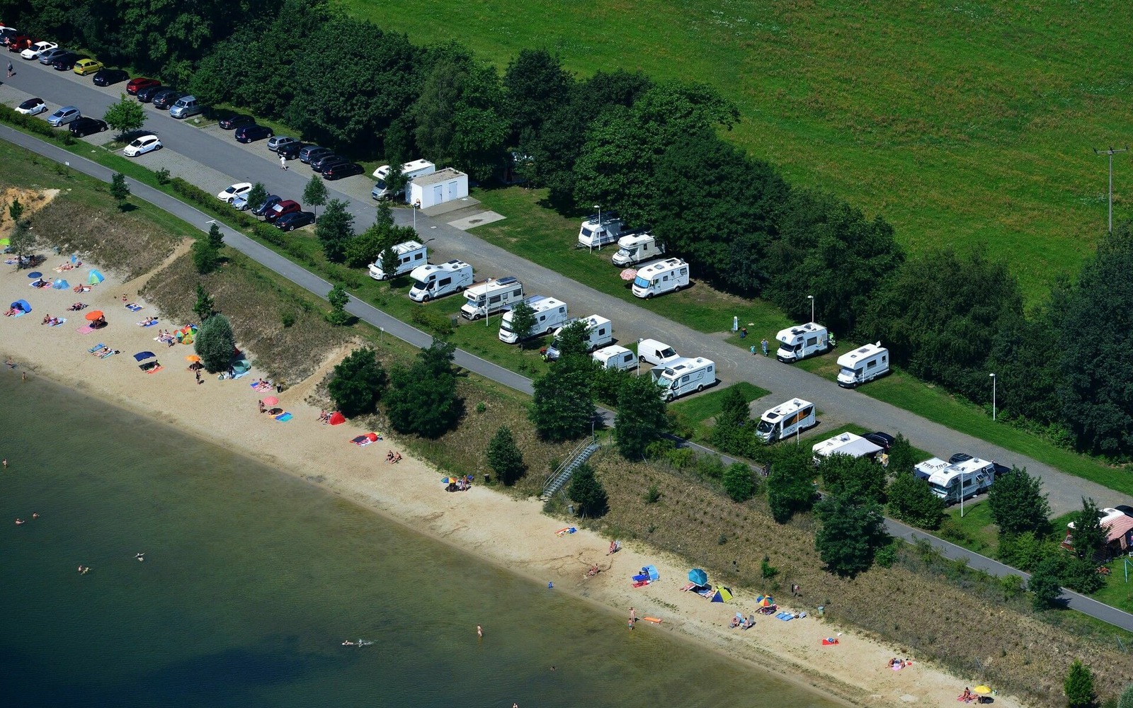 Caravanstellplatz am Weißkollmer Strand am Dreiweiberner See, Foto: Peter Radke