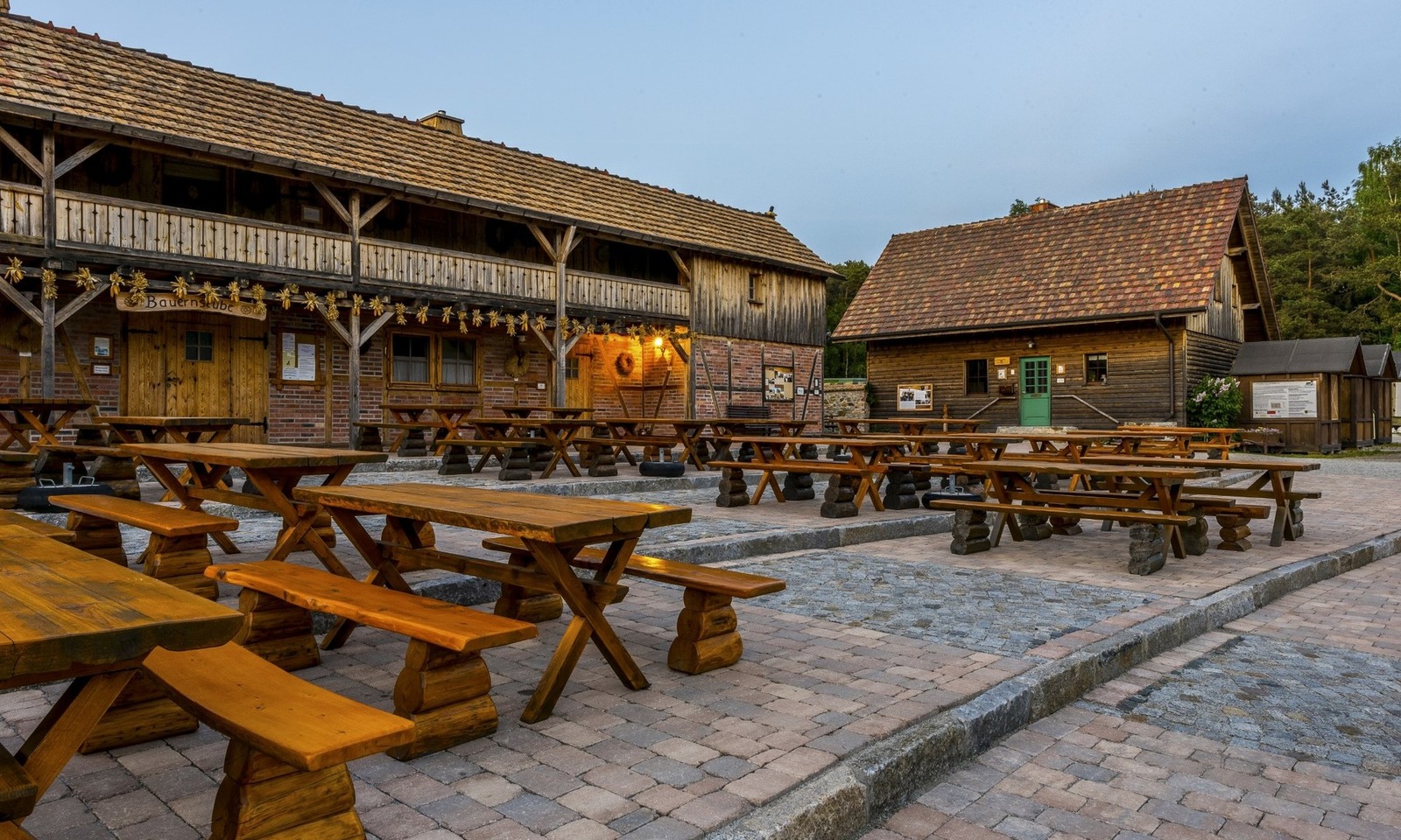Für die leibliche Stärkung sorgen sowohl die Bauernstube mit den beliebten Buttermilchplinsen und Imbissangeboten als auch das Restaurant „Haus des Müllers".