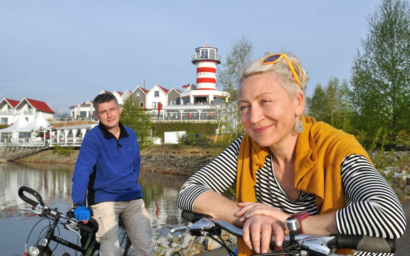 Auf dem 16 Kilometer langen Rundweg um den Geierswalder See gibt es jede Menge zu entdecken. Auf dem Geierswalder See schwimmen nicht nur Boote, sondern Sie können auch in schwimmenden Ferienhäuser wohnen. Während der Tour überqueren Sie drei Kanäle: Der Koschener Kanal ist die erste schiffbare Wasserstraße im Lausitzer Seenland, die den Geierswalder See mit dem Senftenberger See verbindet. Am Ufer des Sornoer Kanals liegt der Aussichtsturm „Rostiger Nagel", ein Wahrzeichen der Region. Dritter im Bunde ist der Barbara Kanal, der künftig den Partwitzer See an den Geierswalder See anschließt.