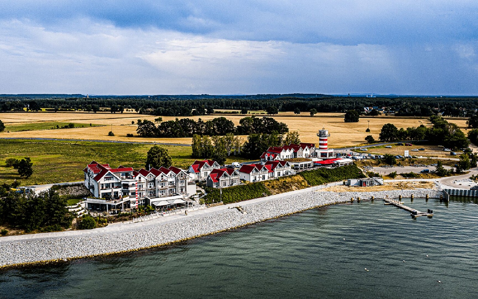 Das Leuchtturm-Hotel liegt direkt am Geierswalder See. Das Vier-Sterne-Hotel verfügt über insgesamt 27 Doppelzimmer, zwölf Ferienwohnungen, das Turmzimmer sowie die Admiralssuite und die Himmelskoje im maritimen Ambiente. Fast alle Zimmer bieten Seeblick, Balkon oder Terrasse. Alle Zimmer sind mit Dusche, Fön und TV ausgestattet. Direkt neben der Seeterrasse gibt es ein behindertenfreundliches Doppelzimmer mit Seeblick. Die Ferienwohnungen können miteinander verbunden werden, so dass in einem Urlaubshaus mit 4 Schlafzimmern bis zu 8 Personen übernachten können.