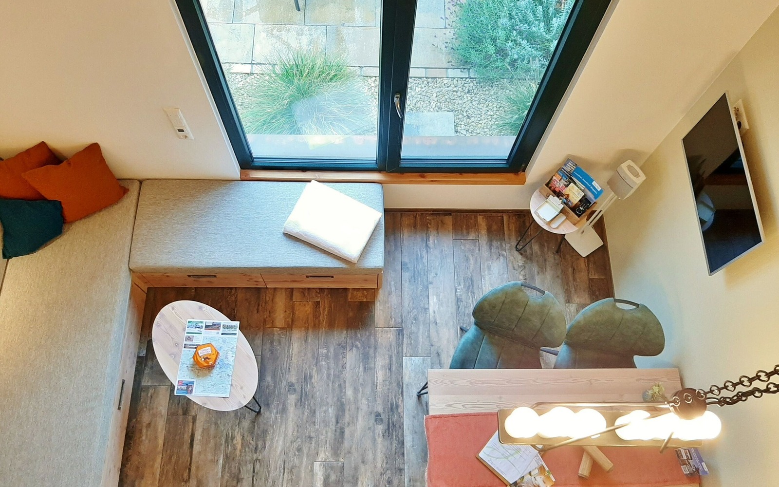 Blick von der offenen Galerie in den Wohnraum, Foto: U. Haselbauer, Lizenz: Tourismusverband Lausitzer Seenland e.V.