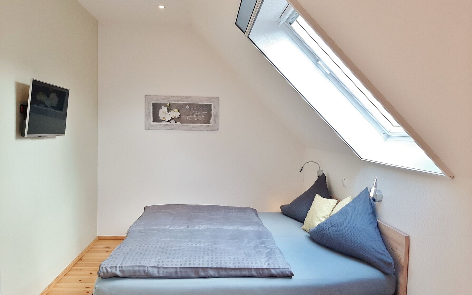 Schlafzimmer Nr. 2 mit Doppelbett und TV, Foto: U. Haselbauer, Lizenz: Tourismusverband Lausitzer Seenland e.V.