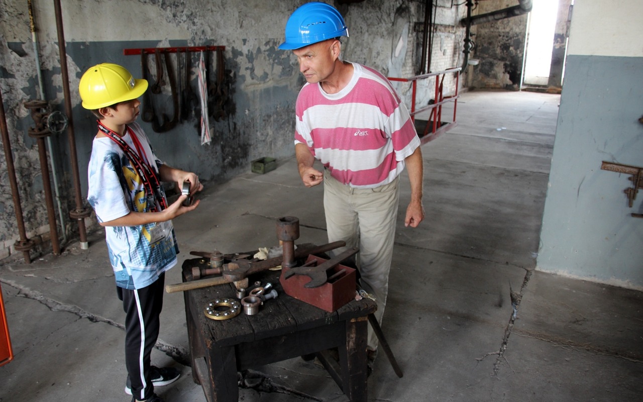 Die Arbeit in einer Brikettfabrik war schwer, gefährlich und schmutzig, es gab in jeder Schicht viel zu tun. Gemeinsam gehen die Kinder mit ihren erwachsenen Begleitern auf 'Schicht in die Fabrik' und erfahren so, welche Aufgaben etwa ein Siebwärter, ein Trocknerfahrer oder Pressenwärter hatte.