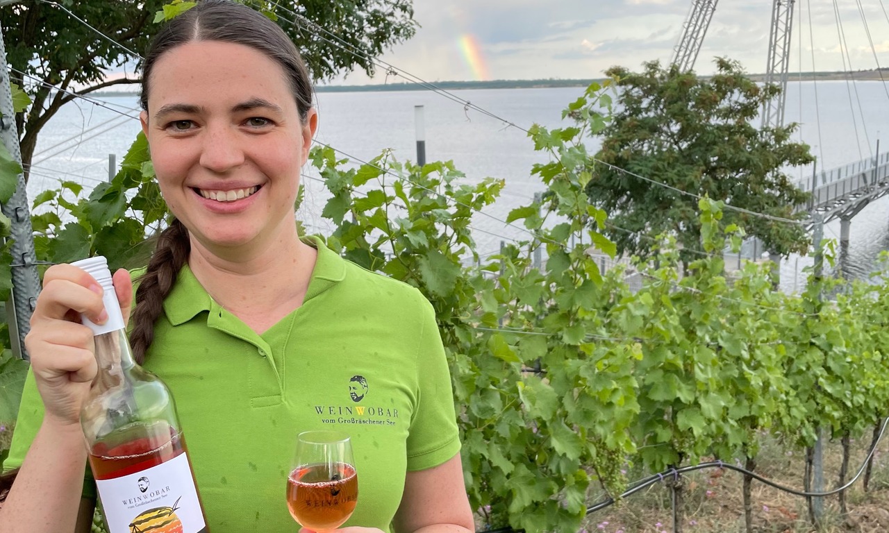 Angela Wobar am Weinberg am Großräschener See, Foto: Weinbau Wobar