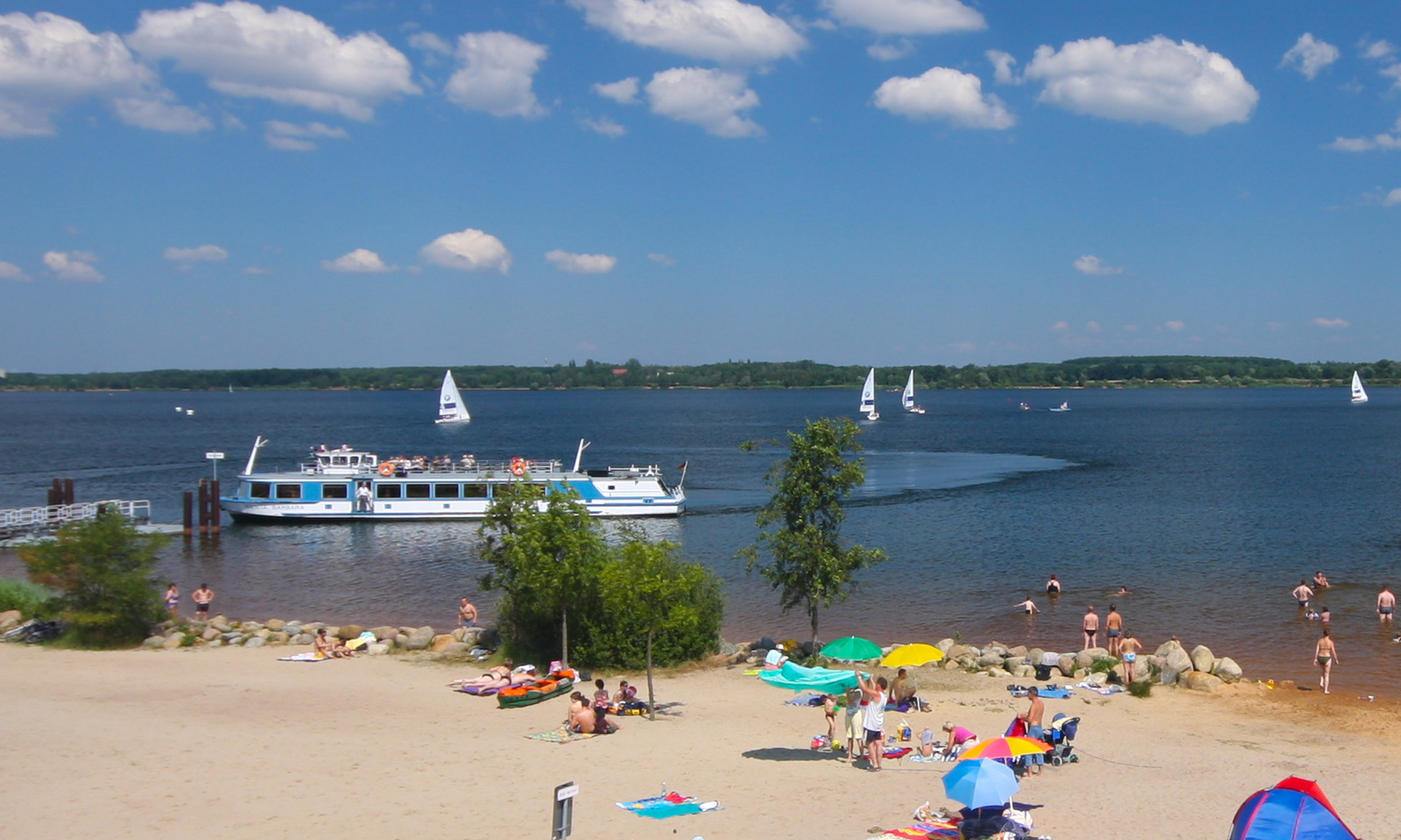 Ein kultiges Vergnügen für die ganze Familie ist eine Tour mit dem Ausflugsschiff MS Santa Barbara. Schon seit mehr als 30 Jahren kreuzt die alte Dame über den Senftenberger See und zeigt auf 70-minütigen Rundfahrten bei Kaffee oder Limonade und Kuchen den beliebtesten Freizeitsee Brandenburgs vom Wasser aus. Saison ist von April bis Oktober, Start- und Zielpunkt der Anleger in Großkoschen. Auch am Stadthafen Senftenberg sowie am Schiffsanleger in Niemtsch könnt ihr zusteigen. Zwischen Mai und September fährt das Traditionsschiff täglich, im April und Oktober nur am Wochenende.