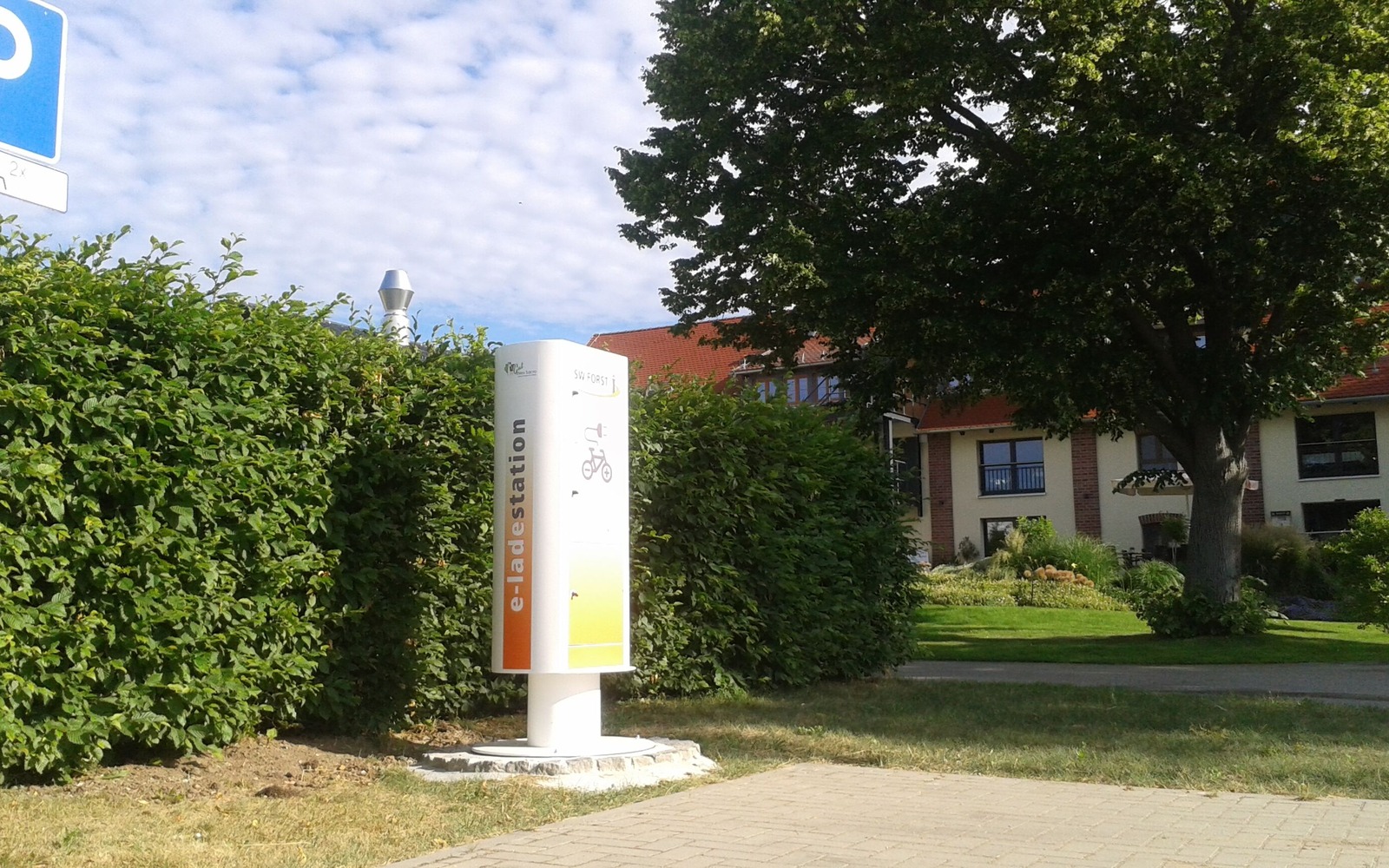 Die E-Bike-Ladestation steht auf dem Parkplatz Gut Neu Sacro in der Nähe des Oder-Neiße-Radweges in Forst (Lausitz). E-Biker können hier kostenfrei Ihren E-Bike-Akku aufladen. An der Ladestation befinden sich 3 Schließfächer mit je 2 Steckdosen für die Akkus. Für die Schließfächer benötigt man nur eine 1,00 Euro oder 2,00 Euro Münze als Pfand zum Verschließen der Tür. Diese Münze erhält man nach dem Öffnen der Tür wieder.