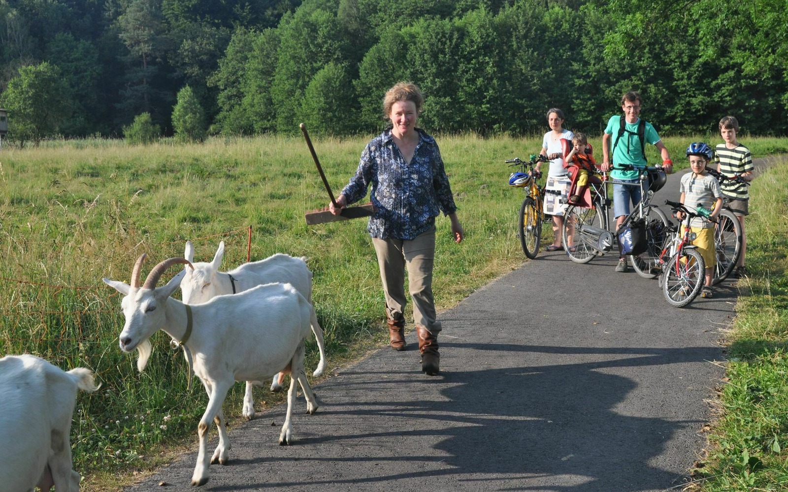 Nach diesem Stop geht es auf der Deichkrone weiter und der Blick schweift über weite Auen. Am Himmel ziehen die Greifvögel ihre Kreise, auf saftigen Wiesen staksen Störche hin und her. Und dies ist nur eines der vielen Bilder, die der Oder-Neiße-Radweg zu bieten hat.