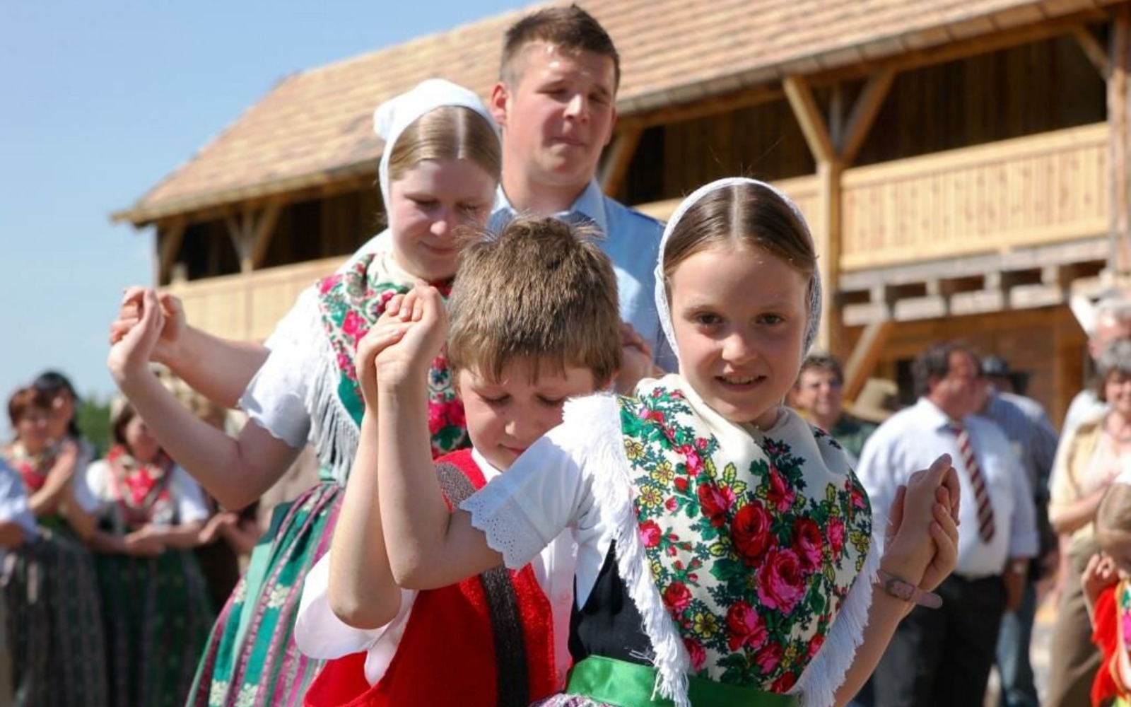 Tänzer in sorbischer Tracht an der Krabat-Mühle in Schwarzkollm, Foto: Nada Quenzel, Lizenz: Tourismusverband Lausitzer Seenland e.V.