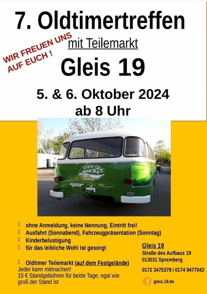 7. Oldtimertreffen mit Teilemarkt am Gleis 19