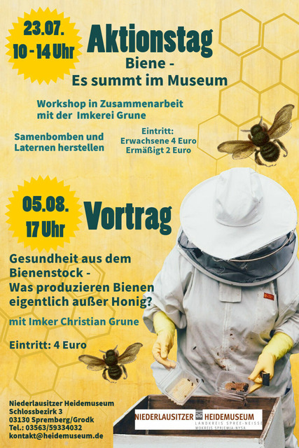 Imker Christian Grune von der Imkerei "Honigtreu" aus Groß Döbbern hält einen Vortrag über die Produktion von regionalem Honig mit anschließender Verkostung und erläutert Interessantes zum Thema: "Gesundheit aus dem Bienenstock - Was produzieren Bienen eigentlich außer Honig?"