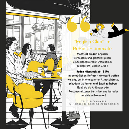 Was ist der English Speaking Club? Wir treffen uns, um in angenehmer Atmosphäre bei Kaffee Englisch zu sprechen, jedes Mal zu einem anderen Thema und in einem anderen Format. Es ist kein Kurs oder Unterricht. Wir lernen kein Englisch. Wir sind nur hier, um unsere Sprechfähigkeiten zu verbessern und Spaß zu haben. Für wen ist das richtig? Es ist das Richtige für Sie, wenn Sie Englisch gelernt haben und sprechen können, aber ohne Übung nicht frei kommunizieren können. Kommen Sie zu uns und lernen Sie unterhaltsames und einfaches Englisch!