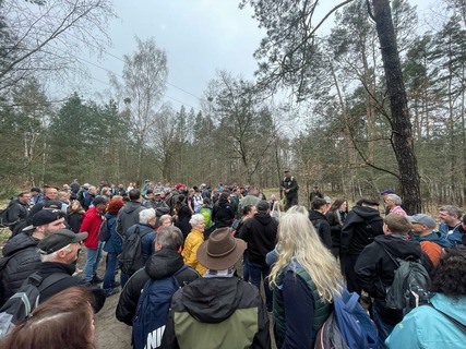 Traditionelle Osterwanderung rings um und in die Peickwitzer Forst, geführt von Harald Konczak, die Wanderung geht ca 2 Stunden, ca bei der Hälfte der Strecke: Päuschen mit kühlen Getränken und die Suche nach dem Goldenem Ei für die Kinder
