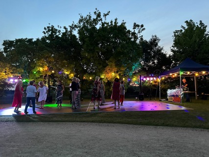 Genießen Sie die Atmosphäre eines lauen Sommerabend mit Musik, guter Laune, Essen und Trinken im Findlingspark.