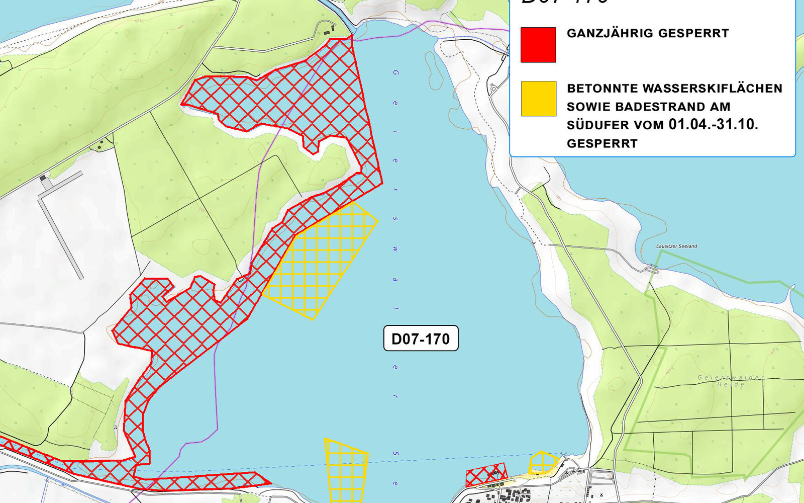 - Grundlage für das Angeln ist die angezeigte Karte zur Beangelung des Geierswalder See (D07-170)