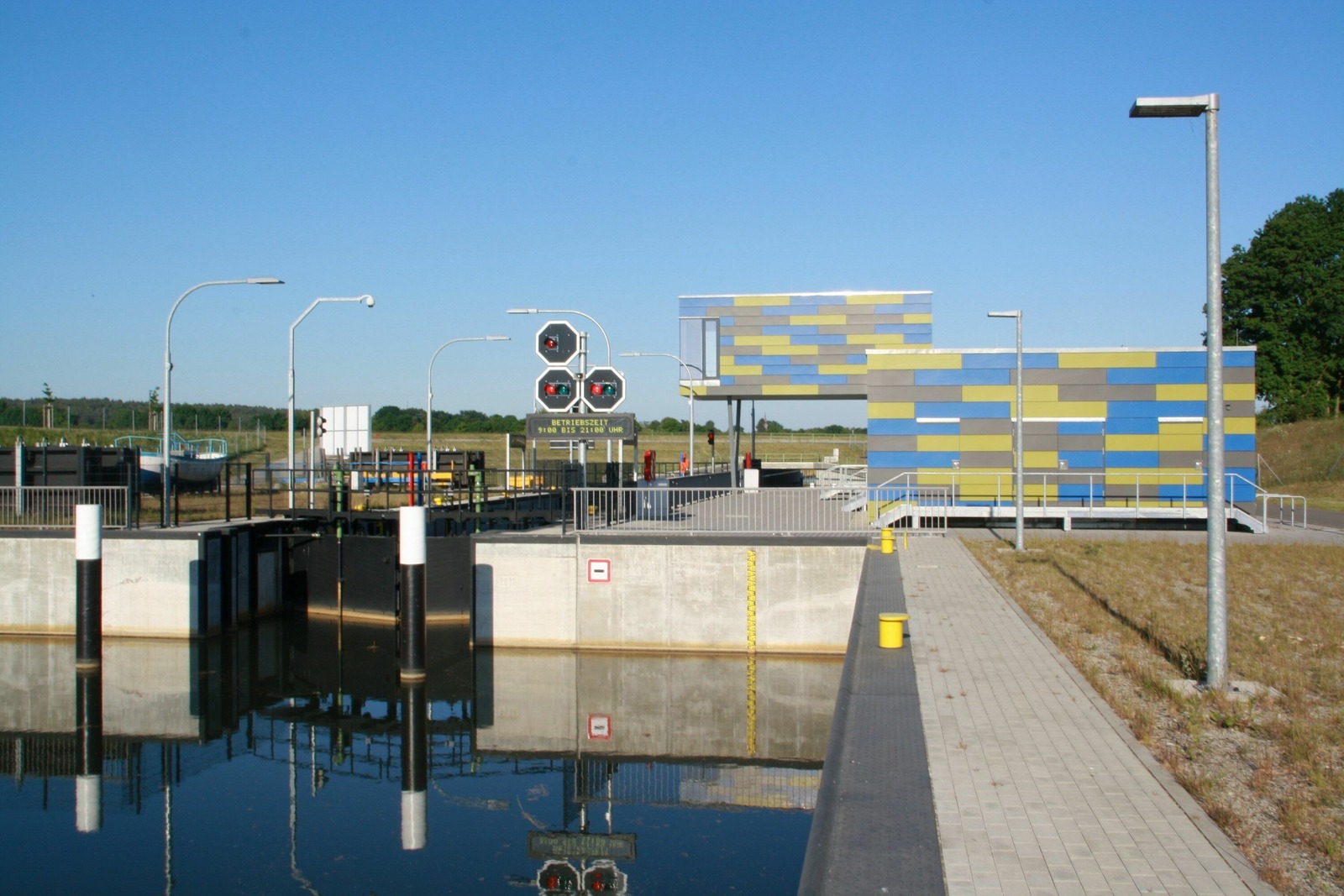 Die Schleusung dauert ca. 15 Minuten, die gesamte Durchfahrt durch den Kanal dauert ca. 50 Minuten (inkl. Wartezeiten an der Schleuse).