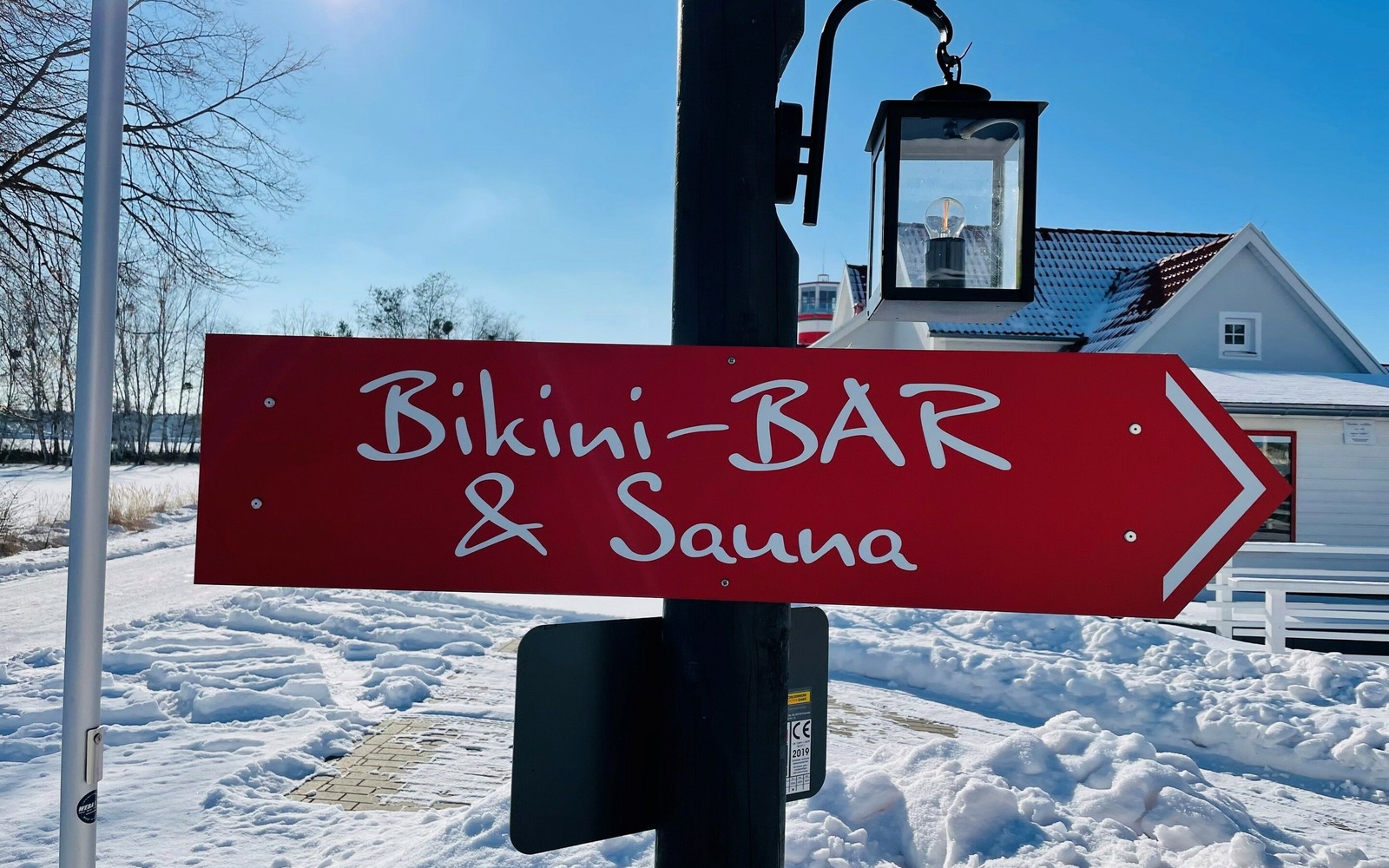 Der Check-in zur Sauna befindet sich an der Rezeption in der Bikinibar.