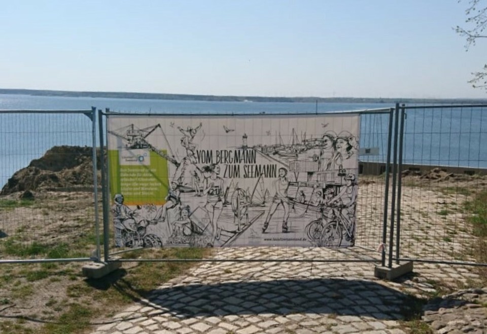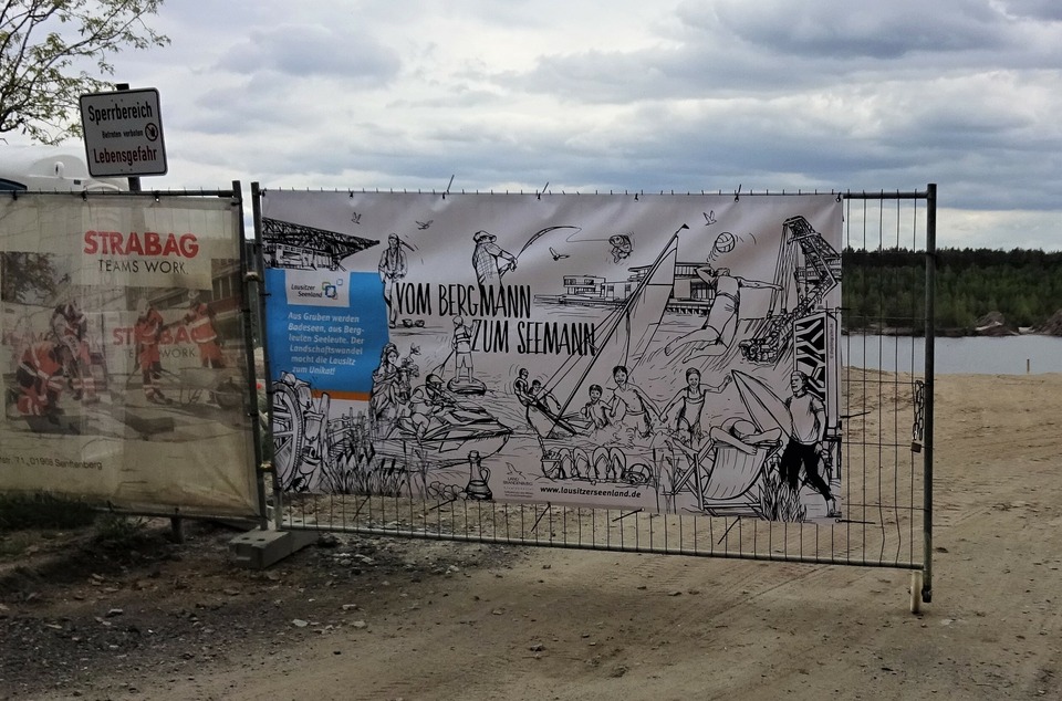 Banner an einer Baustelle am Sedlitzer See, Foto: TV LSL