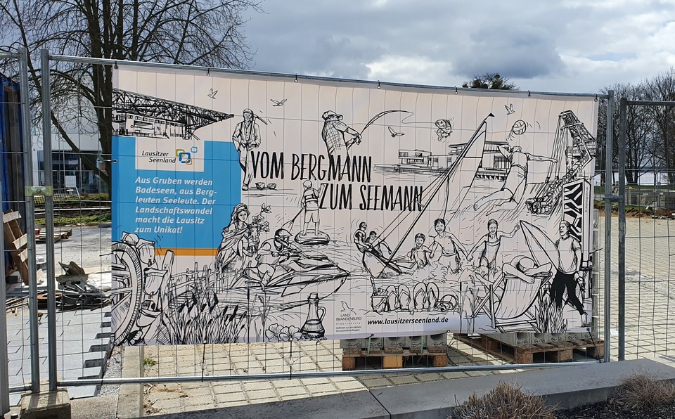 Mit Bannern an den Baustellen in der Region werben wir gut sichtbar für das Lausitzer Seenland und machen auf den Landschaftswandel aufmerksam. Die Banner gibt es in drei Motivvarianten zu den Themen Wasser, Bewegung und Genießen.