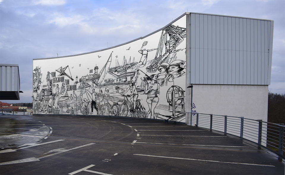 Gestaltungsentwurf für die Wand im Parkhaus Senftenberg, Foto: Die Piktografen GmbH