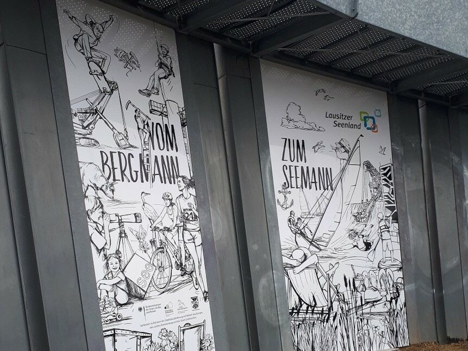 Die Stadt Großräschen erneuerte Ende Januar 2021 mit Mitteln der Städtebauförderung die Gestaltung am Aussichtspunkt Victoriahöhe am Großräschener See in der Allee der Steine. Hier zieren Illustrationen den markanten Aussichtspunkt von innen. Sie zeigen neue Häfen, Förderbrücken, schwimmende Häuser, Bergbaugeräte, Leuchttürme, Bergmänner, Schiffe und Urlauber, die Radfahren, Baden oder Boot fahren. Die Stadt Großräschen hat sich für Motive aus der Werbekampagne "Vom Bergmann zum Seemann" des Tourismusverbandes Lausitzer Seenland entschieden. Bürgermeister Thomas Zenker: „Wir zeigen gern, dass wir ein Teil des Lausitzer Seenlandes sind. Die neue Werbekampagne verbindet nicht nur die Städte und Gemeinden im Lausitzer Seenland, sondern auch die Bergbaugeschichte mit unserer Zukunft als Seen- und Erholungsgebiet."