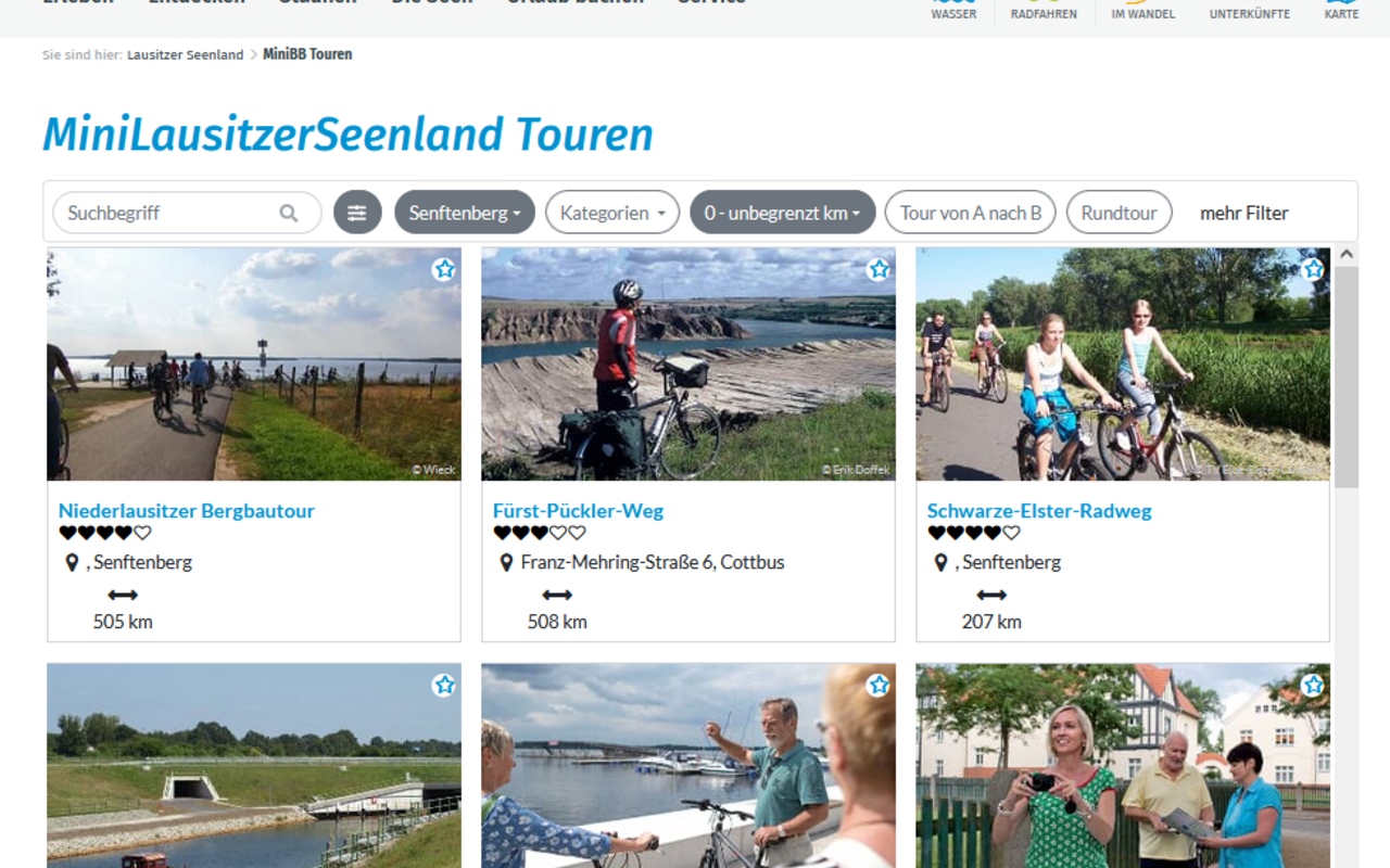 Auf vielen Webseiten von Gastgebern und Anbietern gibt es den Punkt „Umgebung" oder „Ausflugsziele". Aber wie soll dieser mit Bildern gefüllt, gepflegt und aktuell gehalten werden? Und von wem? Mit der Funktion „MiniLausitzerSeenland" können aktuelle Veranstaltungen, Touren in der Umgebung, Gastronomie und Unterkünfte und vieles mehr aus den auf der eigenen Webseite einfach und kostenfrei eingebunden werden. Als Bestandteil von „MiniBrandenburg" handelt es sich dabei um ein Angebot der TMB Tourismus-Marketing Brandenburg GmbH.