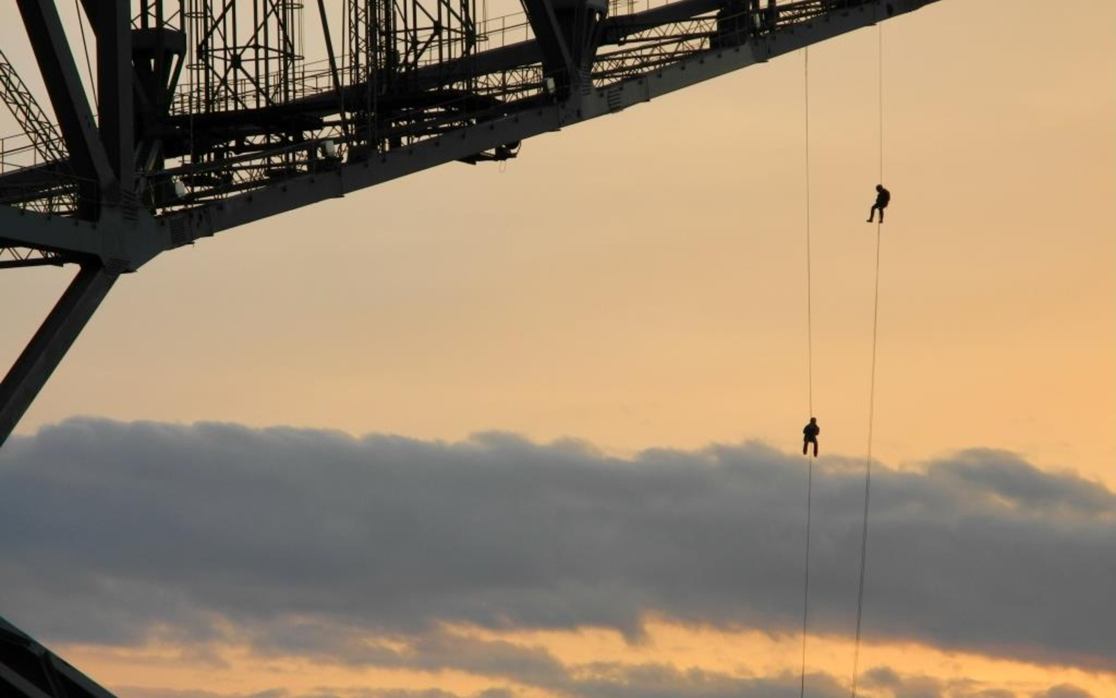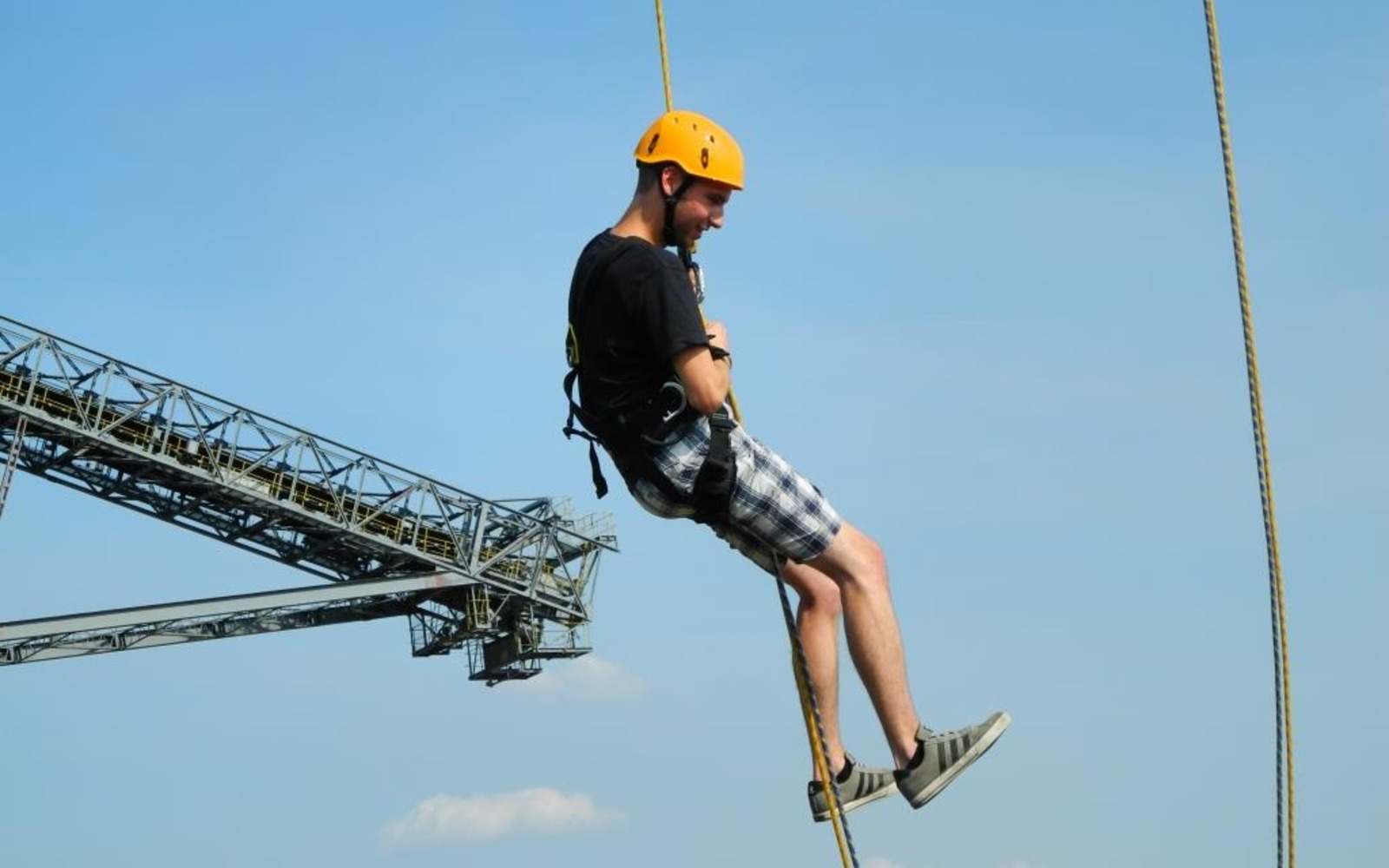 Abseilen von der Abraumförderbrücke