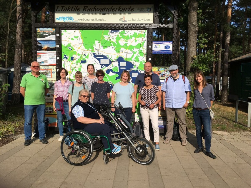 Die Touristiker aus den brandenburgischen Reiseregionen nahmen während des Treffens einige barrierefreie Angebote im Senftenberger Ortsteil Großkoschen, wie den Ferienhof Radlerslust, den Familienpark Senftenberger See, den Radstützpunkt von iba-aktiv-tours mit der großen Blindenkarte sowie das barrierefreie Hafencamp Senftenberger See unter die Lupe. Außerdem ging es mit Fahrrädern, E-Bikes und Handbike auf dem 18 Kilometer langen Rundweg um den Senftenberger See, der als Handbike-Strecke vom Tourismusverband Lausitzer Seenland e.V. erhoben wurde.