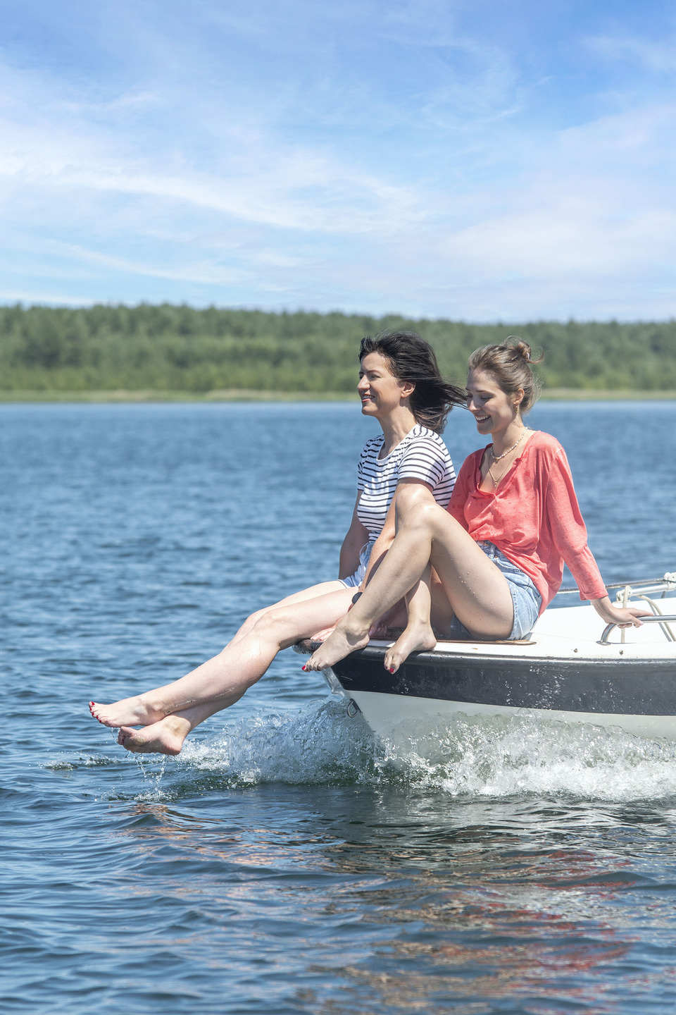 • Symbolfoto Frauen auf Bug von Motorboot(c) Tourismusverband Lausitzer Seenland, Nada Quenzel (JPG; 3,30 MB)