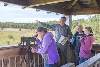 Mit dem Gästeführer am Aussichtsturm im Dubringer Moor