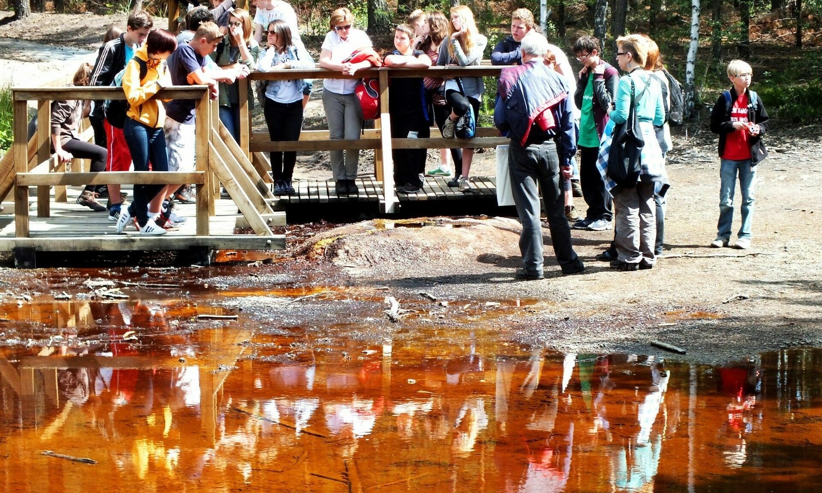 Der deutsch-polnische Geopark Muskauer Faltenbogen ist die Wiege des Braunkohlebergbaus in der Lausitz. Die Gletscher der Eiszeiten formten diese einzigartige Landschaft, falteten die tiefgelegenen Kohle-, Ton- und Glassandschichten und schoben sie in leicht erreichbare Nähe an die Oberfläche. Es entstand der hufeisenförmige sogenannte Faltenbogen. Im 19. Jahrhundert siedelten sich verschiedene Industrien an. Die oberflächennahe Kohle wurde in zahlreichen Gruben abgebaut. Glassande wurden in großen Fabriken aufgeschmolzen und zu edlem Gebrauchsgut verarbeitet. Tone dienten der Herstellung von Ziegeln und Tonwaren. Raseneisenerze wurden im großen Umfang verhüttet und in Formen gegossen. Zeitweilig waren über 60 Gruben gleichzeitig aktiv. Erst mit dem effektiveren Abbau der Braunkohle in den Großtagebauen der Lausitz verlor der Muskauer Faltenbogen an Bedeutung. Relikte dieser Zeiten sind jedoch überall gegenwärtig: naturbelassene Täler, die sogenannten Gieser, schmale Bergbauseen, die sich dicht an dicht über hunderte von Metern erstrecken und in allen Farben schimmern. Die Natur hat sich ihre ursprünglichen Räume nach und nach zurückerobert. Der Geopark besticht nunmehr durch seine Unberührtheit und Einzigartigkeit. Heute ist der Muskauer Faltenbogen eine Altbergbaulandschaft mit einer Vielzahl von kleinen Seen und Wäldern. Über 45 Kilometer erstreckt sich der deutsch-polnische Muskauer Faltenbogen: von Klein Kölzig über Bad Muskau bis über die Neiße nach Tuplice in Polen. Bei geführten Wanderungen und auf thematischen Radrouten lassen sich der Geopark und seine Geschichte entdecken.