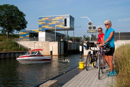 Radler an der Schleuse am Koschener Kanal, Foto: Nada Quenzel