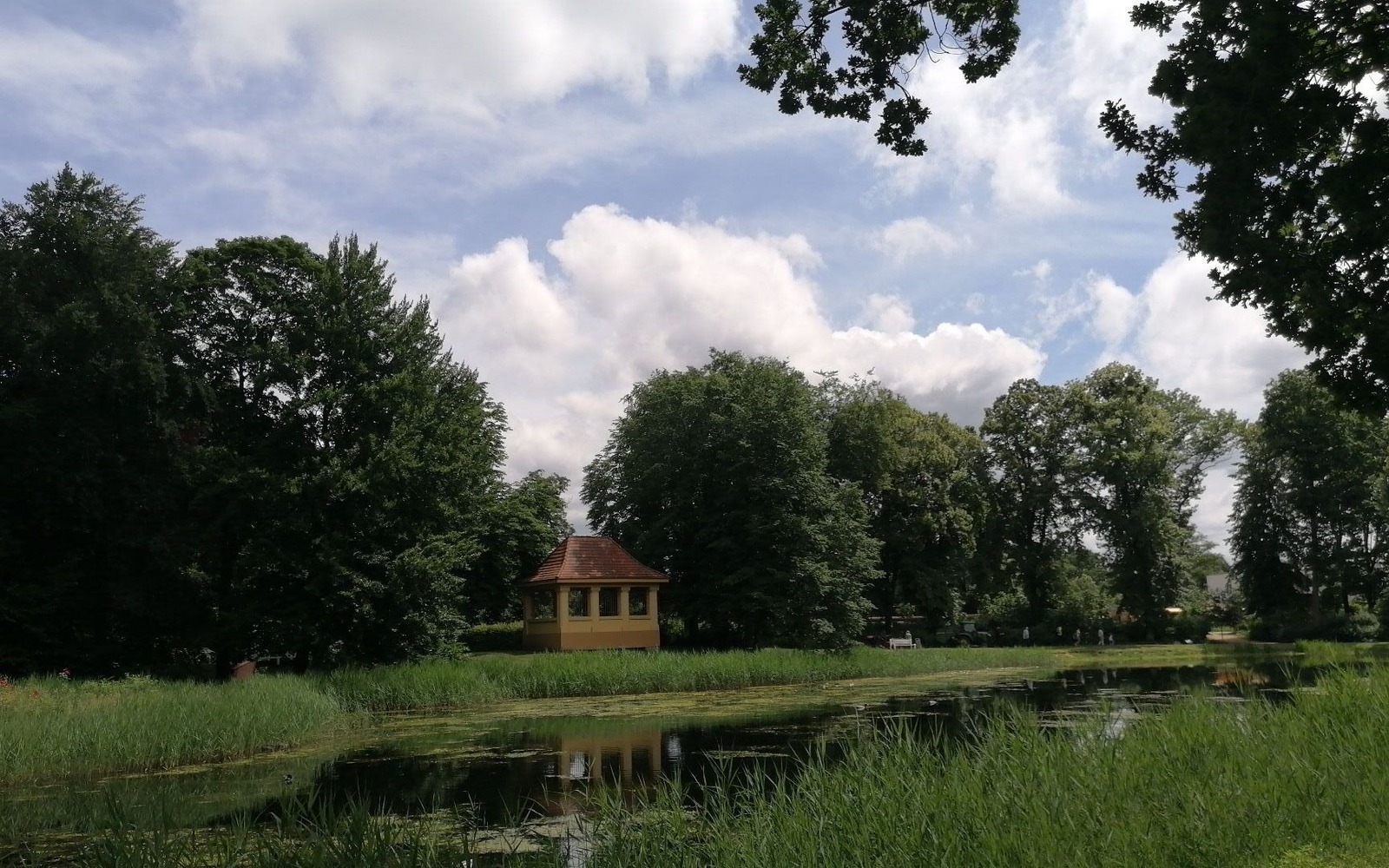The castle pond, which is visually divided into a large and a small pond by an arched bridge, and an East Asian-style pavilion lend the castle park a romantic atmosphere. The ponds are fed by canals, some of which run underground, which flow around the castle to the east and north from the Black Elster. Senftenberg Zoo is also located in the castle park and is bordered by the ramparts of the castle and the Black Elster.