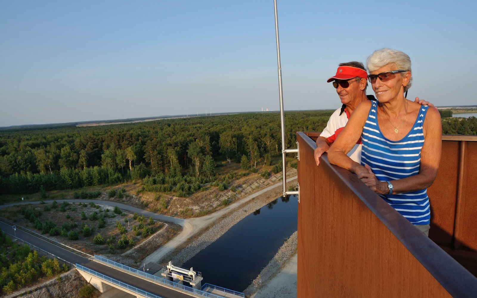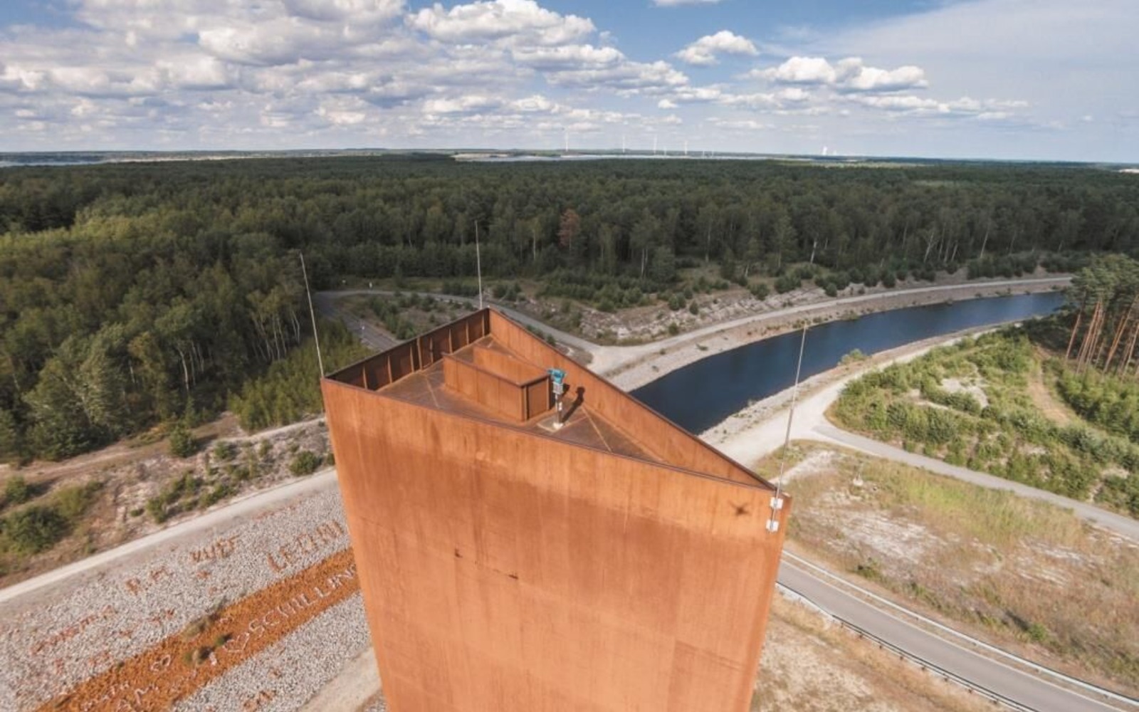 The Lausitzer Seenland Landmark is better known to the locals as the “Rusty Nail”. Located at the point where the Sornoer Kanal opens into Lake Sedlitzer See, the “rusty” observation tower has become one of the most popular destinations in the Lusatian Lake District. The striking architectural creation in rust-red corten steel represents the region’s transformation from a mining area to a place with a new future. The tower stands 30 metres high. It is an ideal rest area for walkers, cyclists and skaters and also offers an impressive panoramic view of the expansive lakeland scenery – making it ideal for observing the development of the Lusatian Lake District. From the viewing platform, it is possible to see Lake Sedlitzer See, Lake Geierswalder See and Lake Partwitzer See.