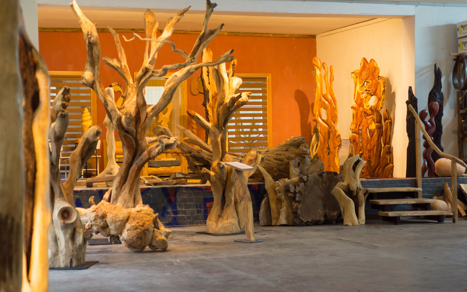 The ancient gnarled trunks from Prince Pueckler’s Park and primeval forest are the medium from which Thomas Schwarz creates his unique works of art. In addition, he uses exclusive woods to make elegant columns and relief works. Whether the art is figurative and realistic of abstract – the soul of the tree that gave the wood is at the heart of it. An unusual wood collection from several hundred varieties of tree and many quirky exhibits on the theme of wood make a visit to his studio a special experience.