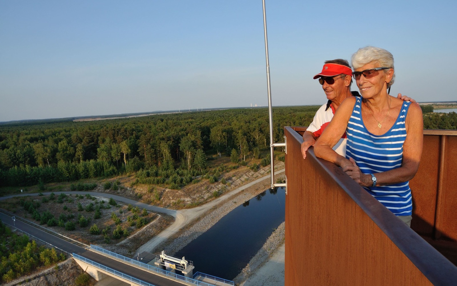 The decades-long transformation from mining district to lake landscape can be experienced in fast motion. With more than 20 flooded lakes and navigable canals, Europe's largest man-made water landscape is growing up in the Lusatian Lakeland. For cyclists who want to experience the changing landscape of the Lusatian Lakeland in one day, the cycle tour is recommended. It starts on the shores of Lake Großräschen, which is almost completely flooded. It leads past the active Welzow-Süd open-cast mine with its large-scale equipment, along rugged banks of future lakes over navigable canals, to the "Rostiger Nagel" observation tower and on to Senftenberg Lake, which has been attracting bathers and water sports enthusiasts for more than four decades.