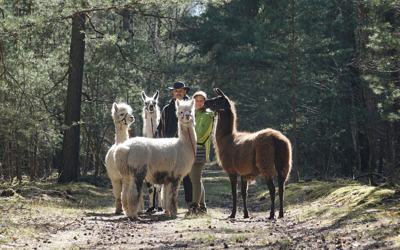 Llamas radiate a special calm. They are unobtrusive and reserved, but at the same time curious and very interested in their surroundings. Alpacas are irresistible with their gaze, their grace and their fluffy fur. They all enchant with their large dark eyes, their cuddly fur and their dignified movements. Every person is accepted by them just as they are.