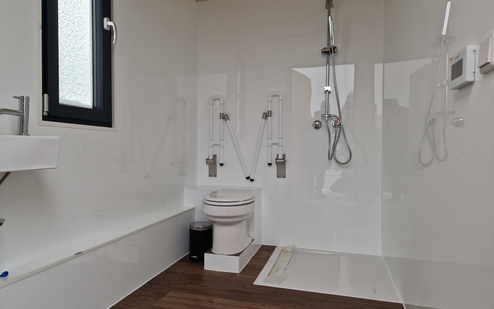 The Finnish sauna on board reaches temperatures of around 90° to 120° Celsius. During the sauna session, the panoramic window offers a breathtaking view of Lake Senftenberg and the surrounding nature. The sauna rafts are also equipped with a lounge, seating, a fridge and a separate WC with shower. Deckchairs are available on the spacious roof terraces to relax and unwind.